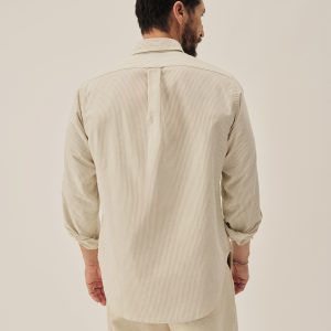 The Big Oxford is a subtle nod to vintage Ivy League tailoring with a gently oversized fit — referencing the proportions of archival American Oxfords. Built from 100% cotton in a 175 GSM heavyweight Oxford weave, using fine combed yarn in the warp and durable carded yarn in the weft. Finished with slightly thicker troca shell buttons.