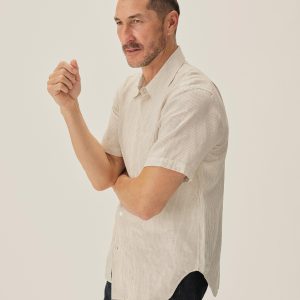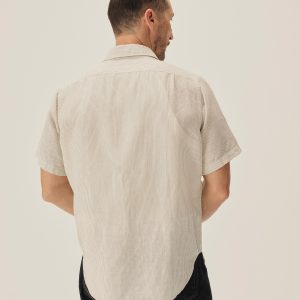 The quintessential short sleeve button-up in a classic fit inspired by a 1940s uniform shirt from our archives. Cut from a lightweight cotton linen blend with a breathable open weave. Details include a perfectly-proportioned point collar, a single chest pocket, and a curved hem.