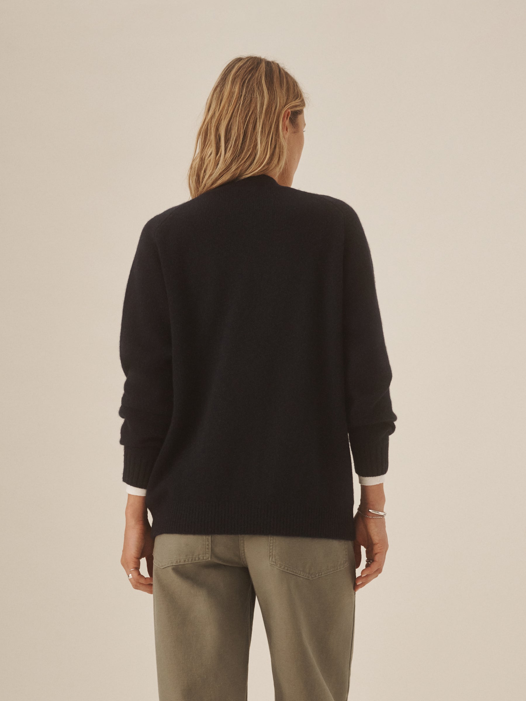 Inspired by vintage “grandfather” cardigans, a sweater made from 100% cashmere in a soft jersey stitch with natural drape and structure. Designed with an oversized fit and saddle armholes, it’s finished with rib trims at the cuffs and hem, functional buttons at the center front, and cleanly finished pockets.