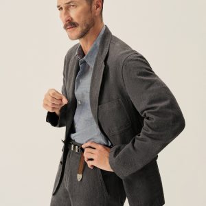 The Carry On Jacket is designed to be casual enough to wear by itself or step up into a full suit with matching trousers. It’s constructed with a classic three-roll, two-button stance with a welt chest pocket and two patch-and-flap pockets at the hip. With no lining or back vent, the jacket is decidedly casual and streamlined. This iteration is made from a light and breathable blend of cotton and linen with a subtly textured herringbone weave.