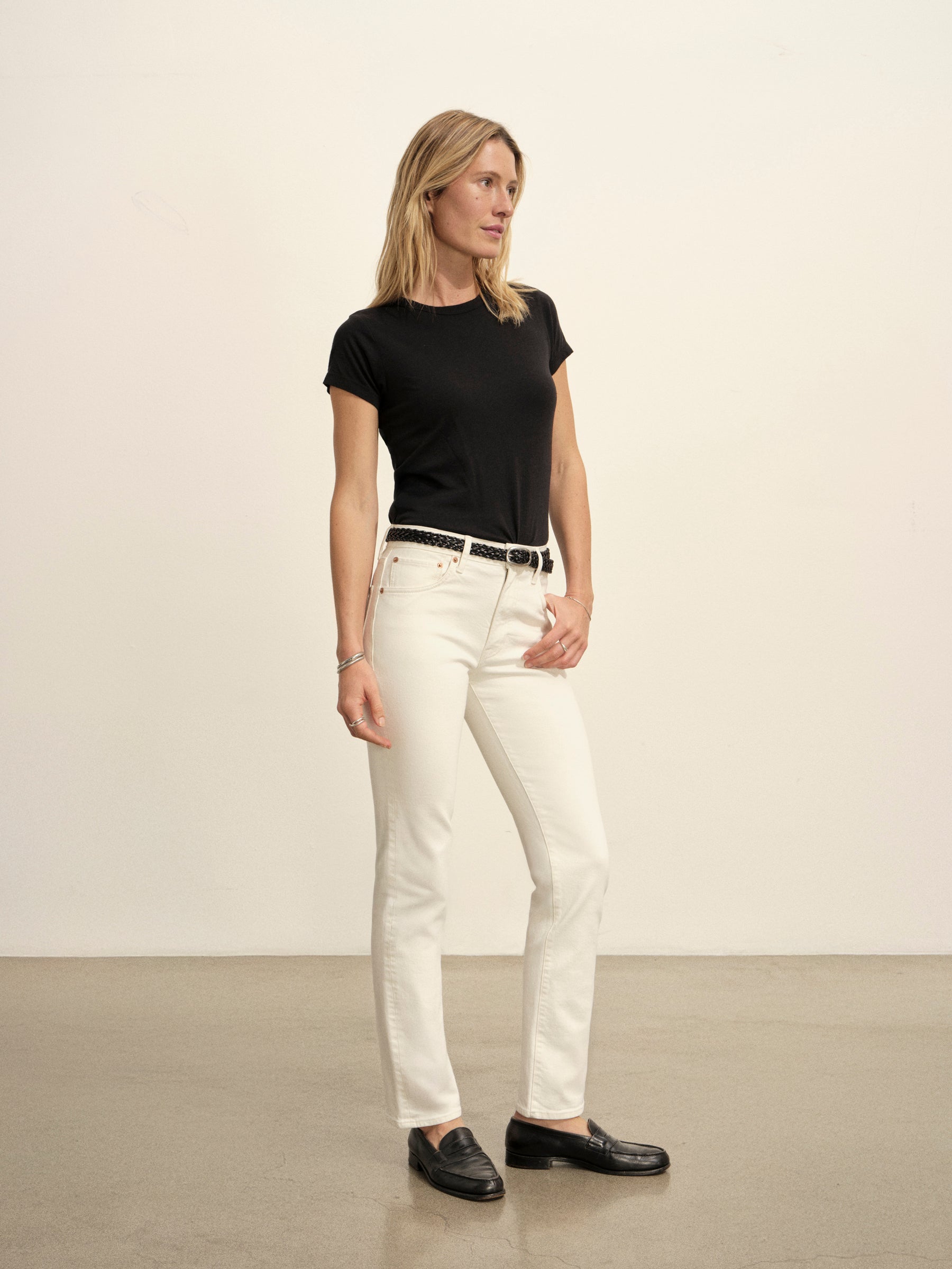 Designed for everyday wear or more polished styling, these mid-rise, slim-leg, ankle-length jeans are the definition of versatility. They’re cut from midweight 12 oz denim—with a hint of stretch for all-day comfort—and are finished with classic details like copper rivets, a metal tack button, and a zipper fly. Garment washed and dyed for a lived-in feel.