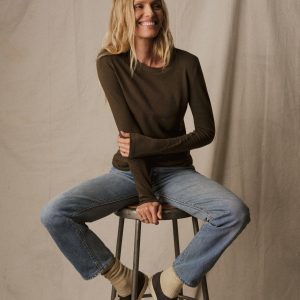 Slim fit long sleeve crewneck tee cut from a supersoft 130 GSM blend of bamboo, cotton, and wool. Features a straight hem, a self bound neck, and raised armholes that hug the contours of the shoulders. Garment washed for a lived-in feel.