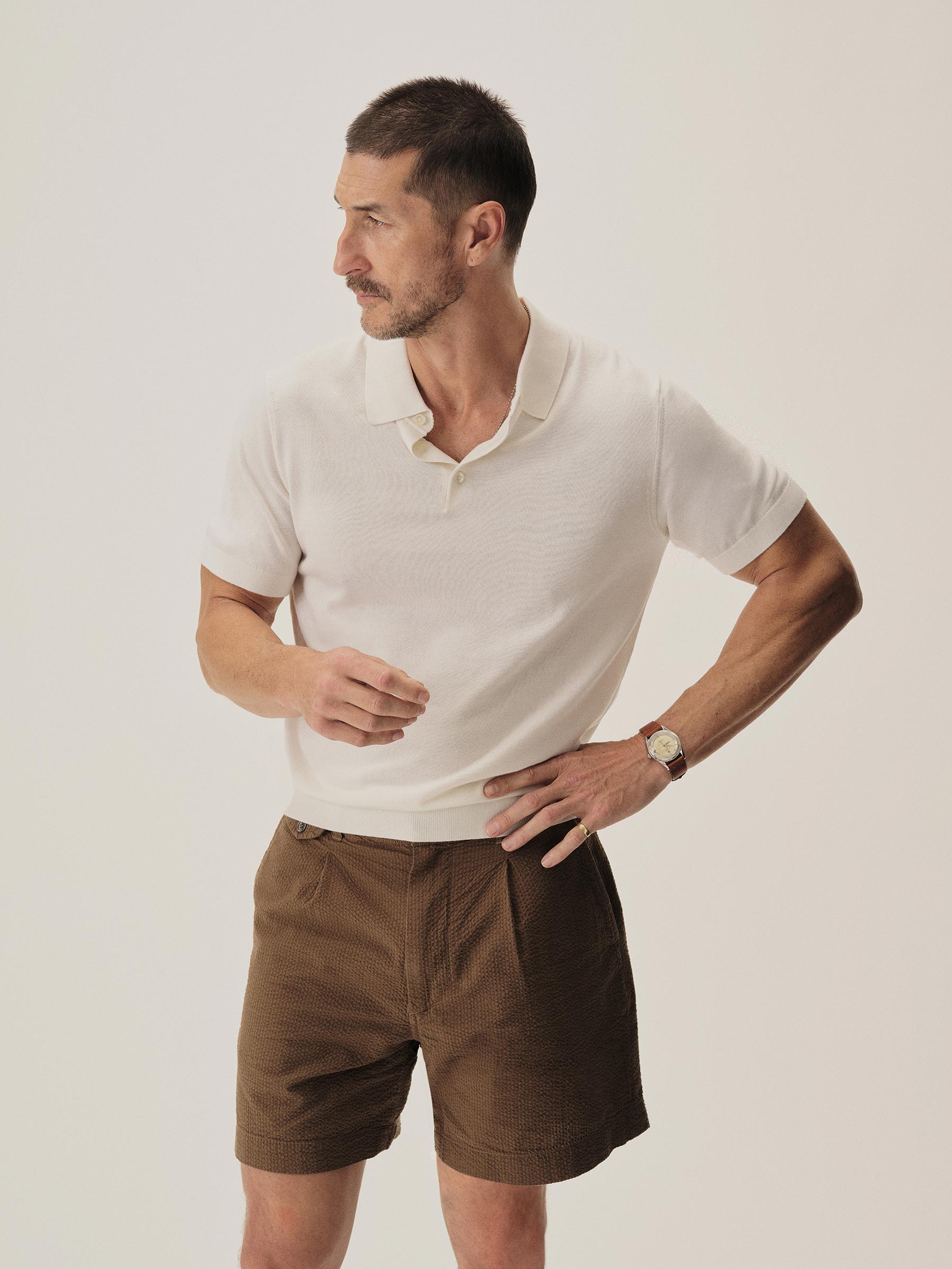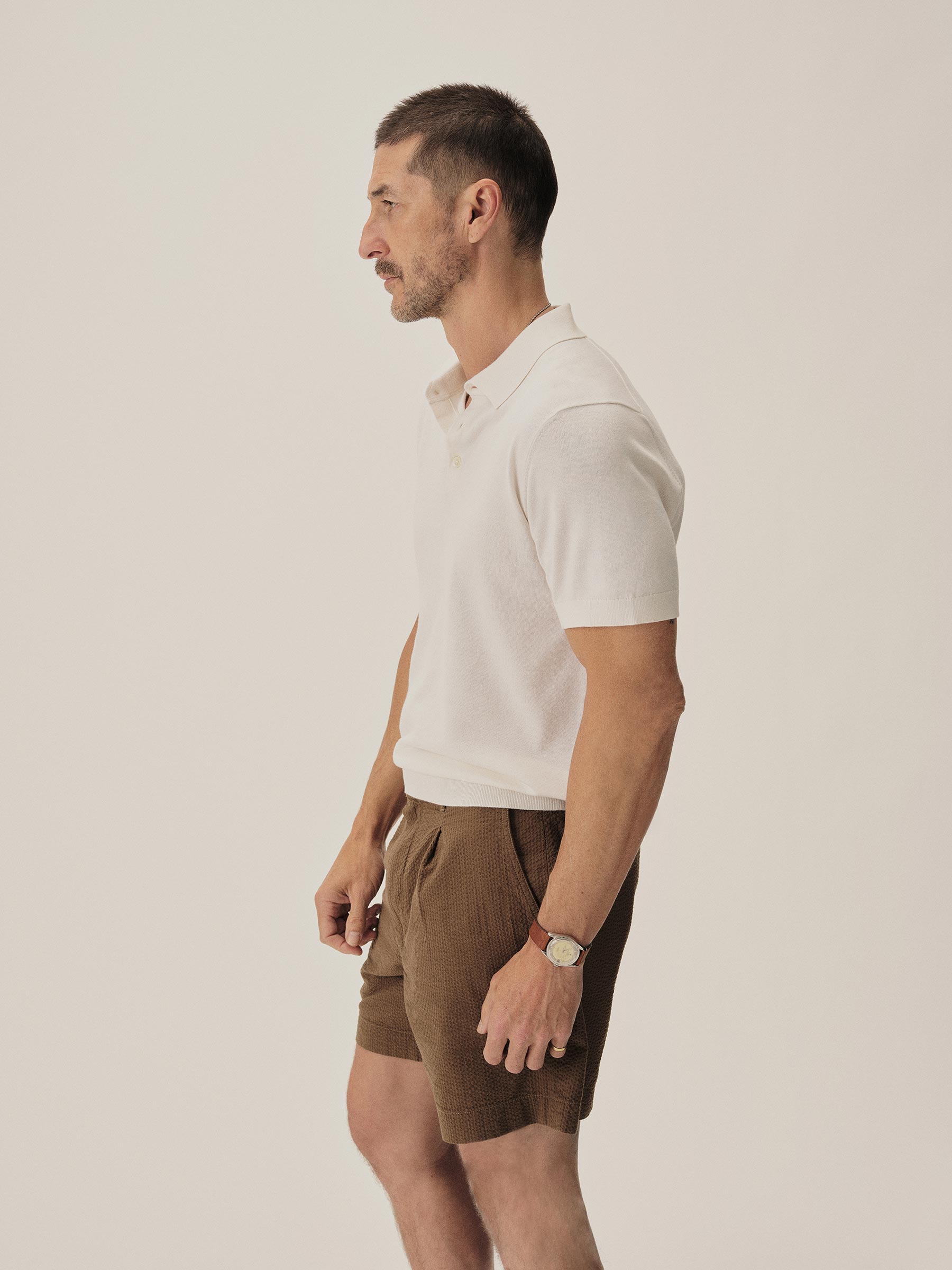 A fully fashioned polo that draws inspiration from the lifestyle surrounding Lake Como in the 1960s. Knit from an ultrafine blend of yarn-dyed organic Egyptian cotton and cashmere, spun in Italy. The polo features a classic fit with jersey body and sleeves, a rib-knit collar, cuffs, and hem.