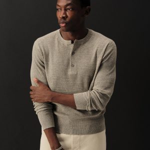 A standard fit, vintage-inspired thermal stitch henley crafted from slubby, yarn-dyed cotton. Featuring variegated rib finishes at the cuffs and bottom hem, and coverstitching along the seams. Finished with a three button shell closure.