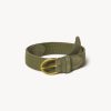 This classic engine-turned plaque belt is a decidedly stately option for those looking to class up the average chinos and oxford shirt look. It works just as well with a flannel suit as it does with tweed and jeans. It’s made from vegetable-tanned steerhide with a croc-embossed texture and has a polished engine-turned plaque buckle.