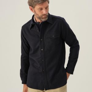 Classic fit chore coat with a slimmer cut through the arms and room in the torso for layering. This 340 GSM felted merino wool has been twice boiled for improved insulation and durability. Details include three patch pockets, real horn buttons, and a notch collar. Constructed with hand-sewn facings and cover-stitching throughout.