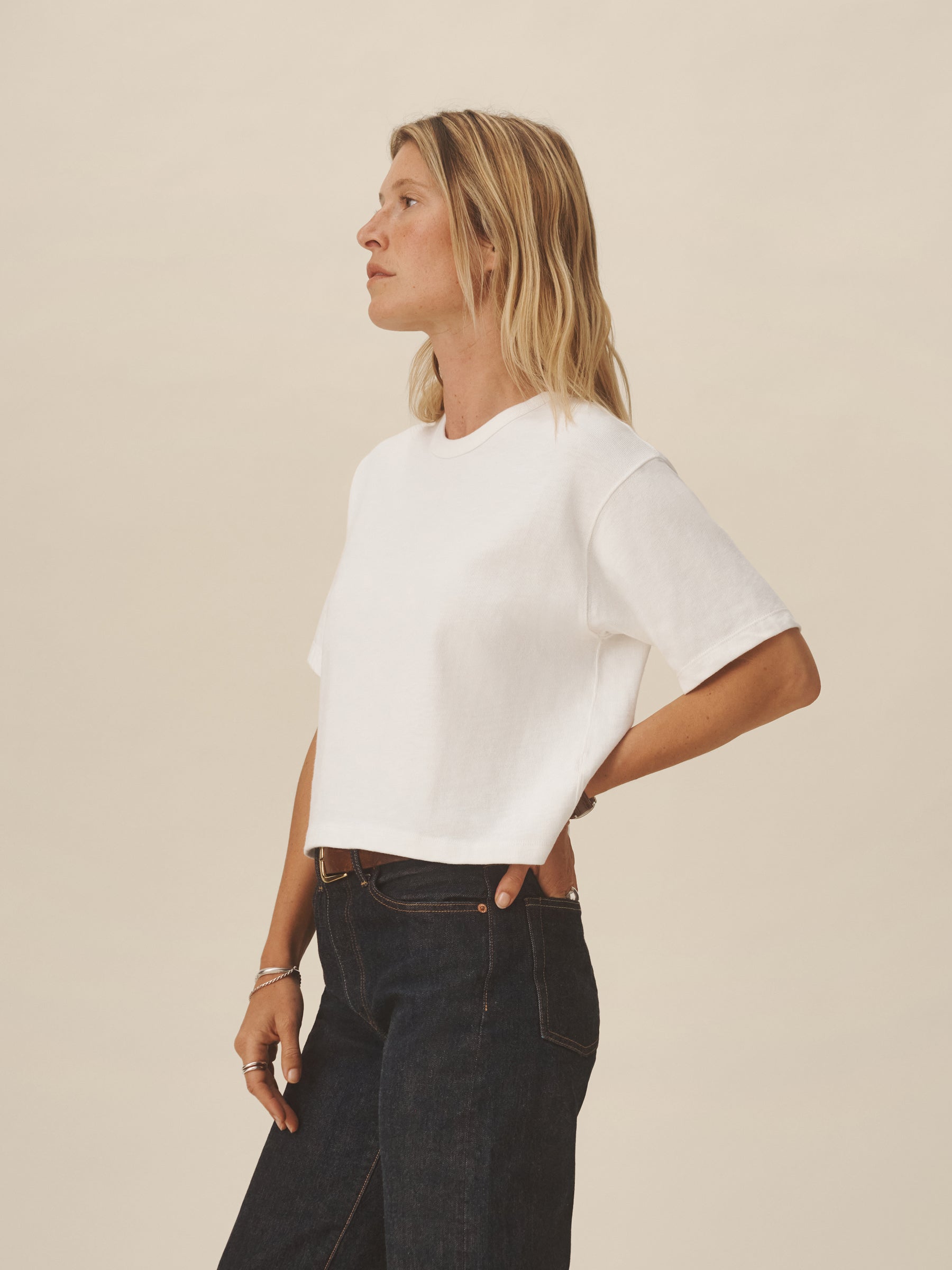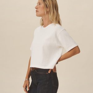 Cut from a heavyweight 310 GSM cotton, this slightly oversized, boxy crewneck tee has a straight hemline that hits right at your natural waist. Double-washed for a soft, smooth texture and consistent fit.