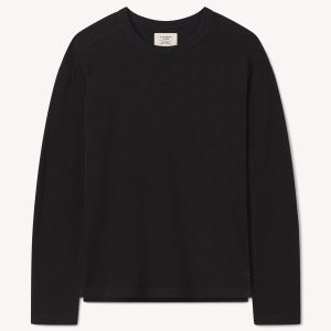A relaxed, long-sleeved, heavyweight cotton tee modeled after a vintage rugby shirt. The soft cotton jersey is about twice as heavy as our Pima tee, with tiny vertical ribs that gently glide across the skin. This is a solid, substantial stand-alone tee for cold weather.