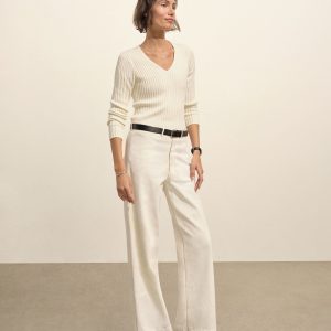 A vintage-inspired V-neck sweater with bracelet-length sleeves, crafted from premium Italian cotton yarn with a 3×3 ribbed structure for added stretch and a snug, flattering fit. Garment-washed for a truly authentic, worn-in feel.