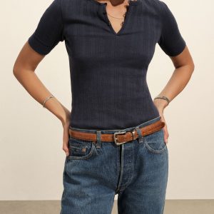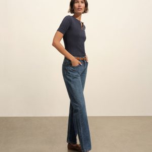 Military-inspired short sleeve henley, crafted from a superfine blend of new and recycled cotton with a subtle, textured rib. Featuring a three-button loop placket and sleeve cuffs. Finished with mother of pearl buttons and garment washed for a lived-in feel.