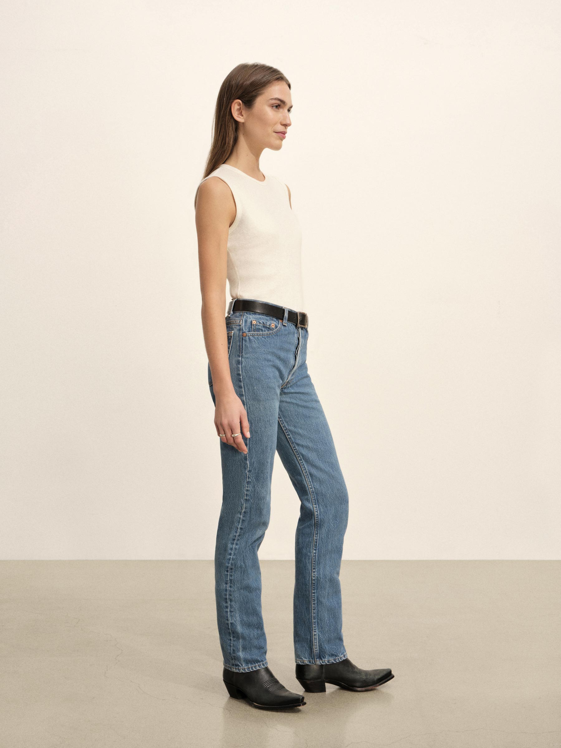 Classic slim-fit, vintage-inspired muscle tank made from a textured blend of 60% recycled cotton and 40% cotton rib that holds its shape.