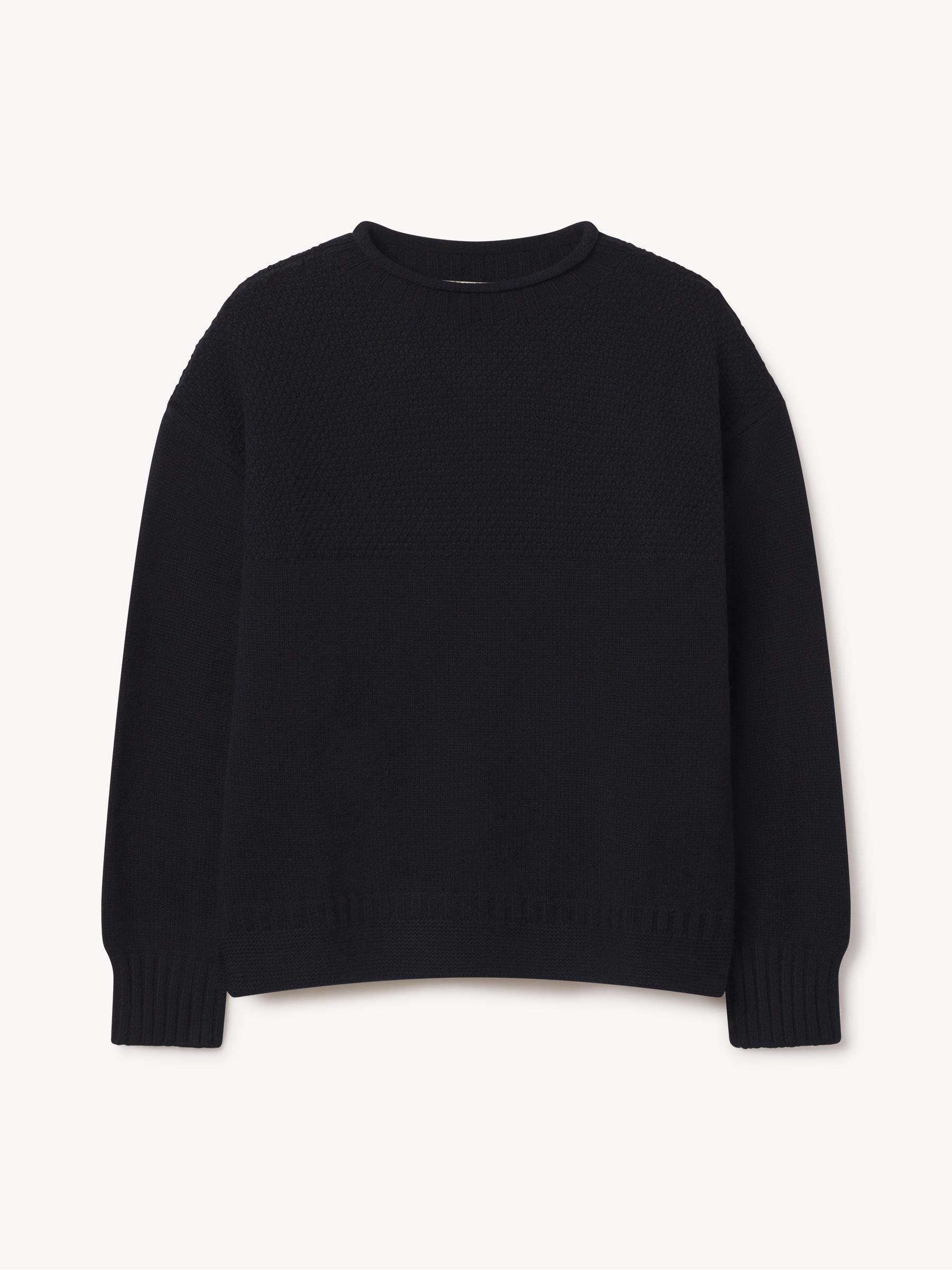A nod to traditional fishman styles and workwear knits from the 1600s, our Guernsey Rollneck features a relaxed, slightly cropped fit in a comfortable 100% merino wool. Moss stitch upper body with rib finishes at cuffs and collar. Jersey roll at collar top edge with a garter stitch hem.
