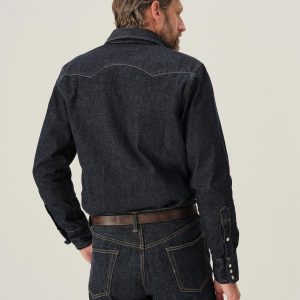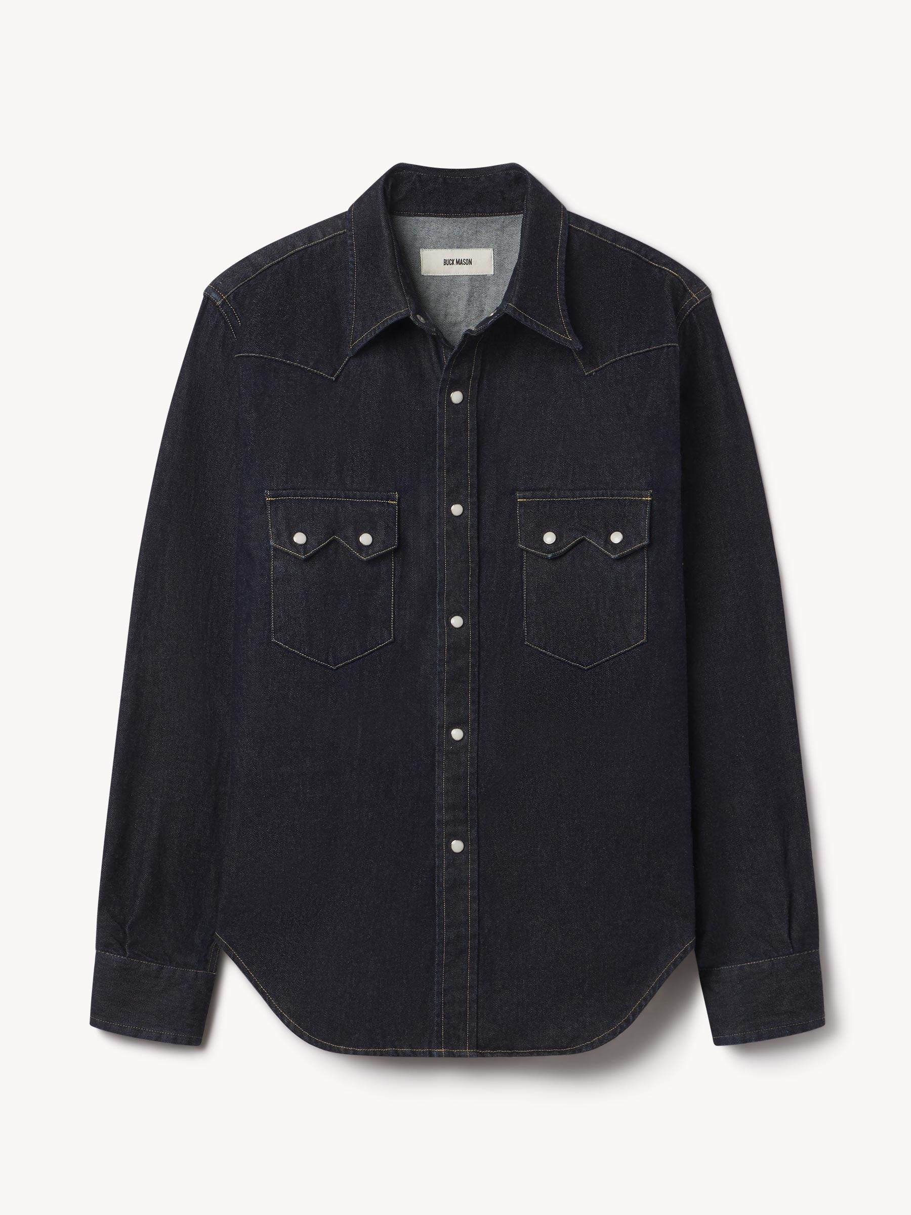 Distinct from single-point Western shirts, the sawtooth pocket style gets its name from the unique, double-point pocket flaps made popular in the 1950s. Cut in a comfortable, classic silhouette, our version is built from 100% cotton Japanese denim twill and features curved front yokes, a curved double-point back yoke, and Japanese U-rim pearl snaps. Fabric will crock/transfer indigo during intial wear- to subside as patina develops.