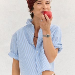 Our Mainstay button-down shirt, reimagined for summer with a 20 ¼” cropped body and rolled sleeves, cut from a lightweight, 2.8 oz. cotton weave. Featuring felled seams and a back yoke with a box pleat. Finished with mother of pearl buttons and garment washed for a broken-in feel.