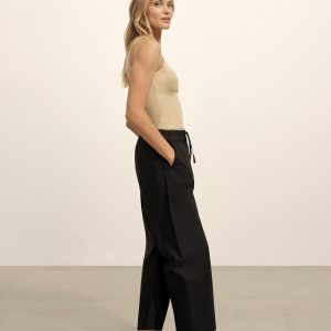 High-rise, military-inspired pant crafted from lightweight cotton poplin with a cropped, 27” inseam and curved barrel legs. Details include two front baker pockets and back patch pockets. Finished with corozo buttons, a zipper fly, and a metal hook and bar with a self-adjusting elastic waistband. Garment-washed for a lived-in feel.