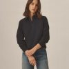 Boxy long-sleeve crewneck in a cropped 20” length that hits at the waist. Cut from 120 GSM jersey knit from long-staple Supima cotton. Features a ribbed neck and cover stitching at the hem. Garment washed for a lived-in feel. Grown and sewn in the U.S.A.