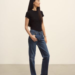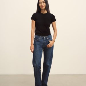 Slim fit short sleeve crewneck tee with a straight hem in 120 GSM jersey, knit from long-staple Supima cotton. Constructed with a durable rib stitch collar and double-needle cover stitch hem. Garment washed with softener for a lived-in feel.