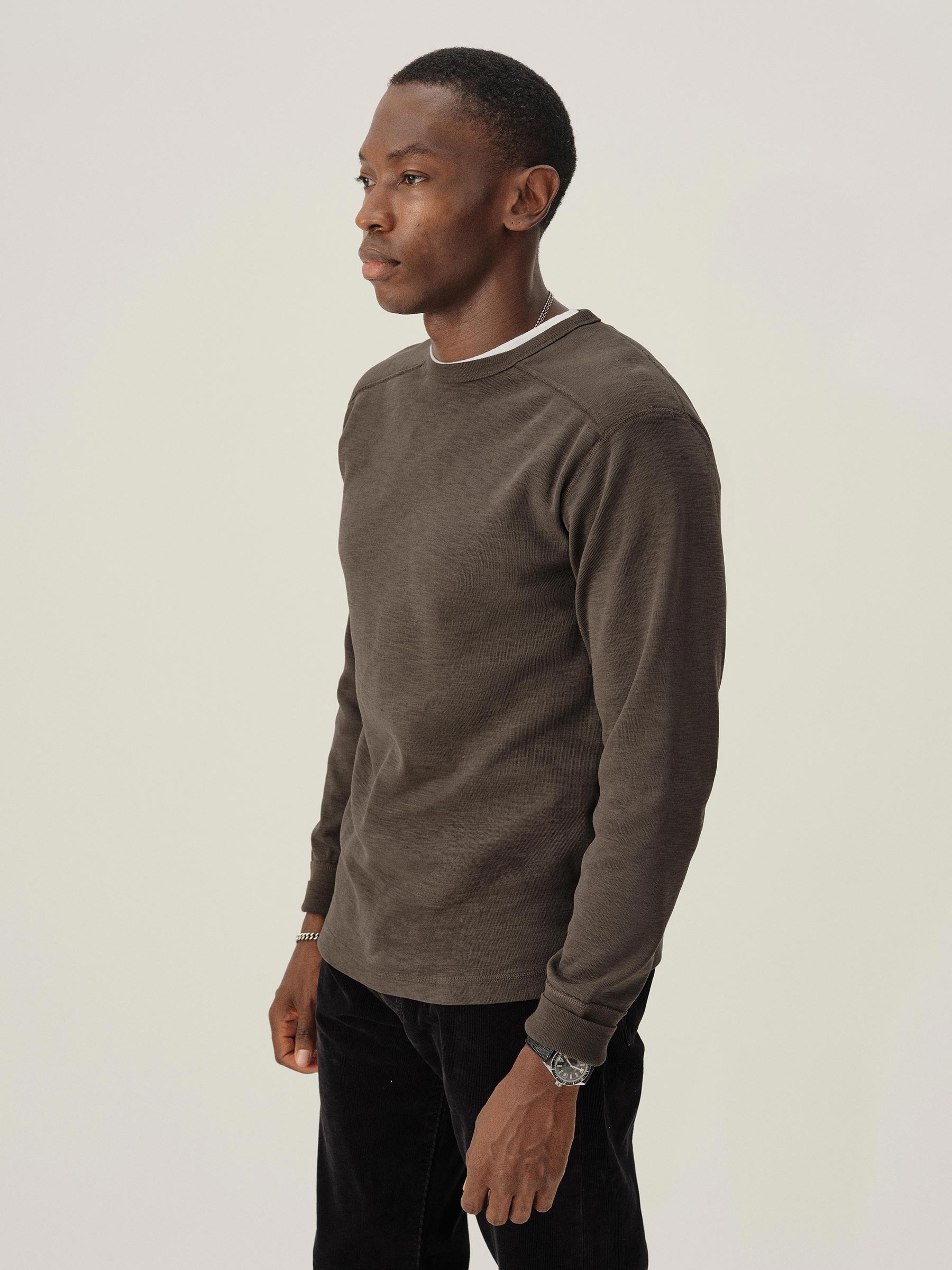 The Sidewinder is inspired by a tee first made a century ago to be worn beneath US military uniforms. When the heat was on, soldiers unbuttoned their top layers, and the tee took on the status we know today: as a garment worn proudly alone. Like the original, ours is made in a substantial ribbed cotton that wears hard but breathes easy