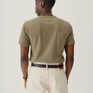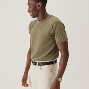 The Sidewinder is inspired by a tee first made a century ago to be worn beneath US military uniforms. When the heat was on, soldiers unbuttoned their top layers, and the tee took on the status we know today: as a garment worn proudly alone. Like the original, ours is crafted from substantial ribbed cotton that wears hard but breathes easy. We cut it for a classic fit that’s not too tight, not too loose.