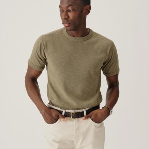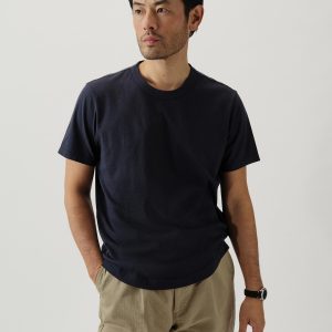Classic fit short sleeve crewneck tee with our signature curved hem, cut from USA grown 145 GSM cotton with a light slub texture and sewn at BM Knitting Mills in Mohnton, PA. Constructed with self-neck binding and a flat stitch finish for comfort. Garment washed with enzymes and softener for a lived-in feel.