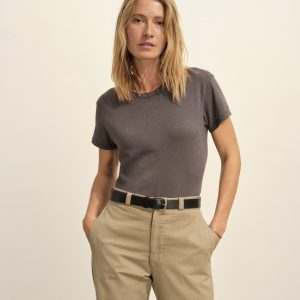 Classic fit short sleeve crewneck tee with a straight hem, cut from 125 GSM cotton with light slub texture. Constructed with self neck binding and ladder stitch detailing at the hems. Garment dyed and washed with softener for a lived in feel.