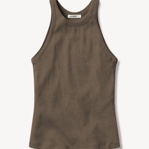 Slim fit, vintage military-inspired tank cut from 295 GSM stretch cotton that holds its shape. 2×2 rib structure—two rows of rib stitch, two rows of jersey stitch—is offset by contrast 1×1 ribbing at the neck. Features a hidden thread chain and snap at each shoulder to hold bra straps in place. Constructed with flatlock stitching throughout and double needle coverstitching at the hem. Garment washed for a lived-in feel.