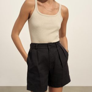 Slim fit, vintage military-inspired tank cut from 295 GSM stretch cotton that holds its shape. 2×2 rib structure—two rows of rib stitch, two rows of jersey stitch—is offset by contrast 1×1 ribbing at the neck. Features a hidden thread chain and snap at each shoulder to hold bra straps in place. Constructed with flatlock stitching throughout and double needle coverstitching at the hem. Garment washed for a lived-in feel.