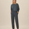 Straight leg, high-waisted 2×2 rib knit pant cut from 295 GSM stretch cotton that holds it shape. Fits comfortably at the waist with a wide elastic waistband with a full length inseam measuring 31 3/4”. Garment washed for a lived-in feel.