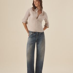 Straight leg, high-waisted 2×2 rib knit pant cut from 295 GSM stretch cotton that holds it shape. Fits comfortably at the waist with a wide elastic waistband with a full length inseam measuring 31 3/4”. Garment washed for a lived-in feel.