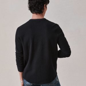 Classic fit thermal long sleeve crewneck tee with our signature curved hem. This 250 GSM French rib cotton double knit features a waffle-knit face and a smooth jersey back. Constructed with ribbed cuffs and flat-lock stitching throughout for improved comfort and durability. Garment washed with enzymes and softener for a lived-in feel.