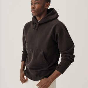 A midcentury-inspired hooded sweatshirt made from plush, not-too-heavy, not-too-light, welterweight French terry. Features a double-layer hood and kangaroo front pocket.