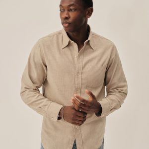 Classic fit short sleeve camp collar button up cut from a mercerized 4 oz. washed cotton. Features a four-button placket with mother of pearl buttons, a single spade chest pocket, and a loop and button closure at the neck. Constructed with clean finished seams. Garment washed with enzymes for a lived-in feel.